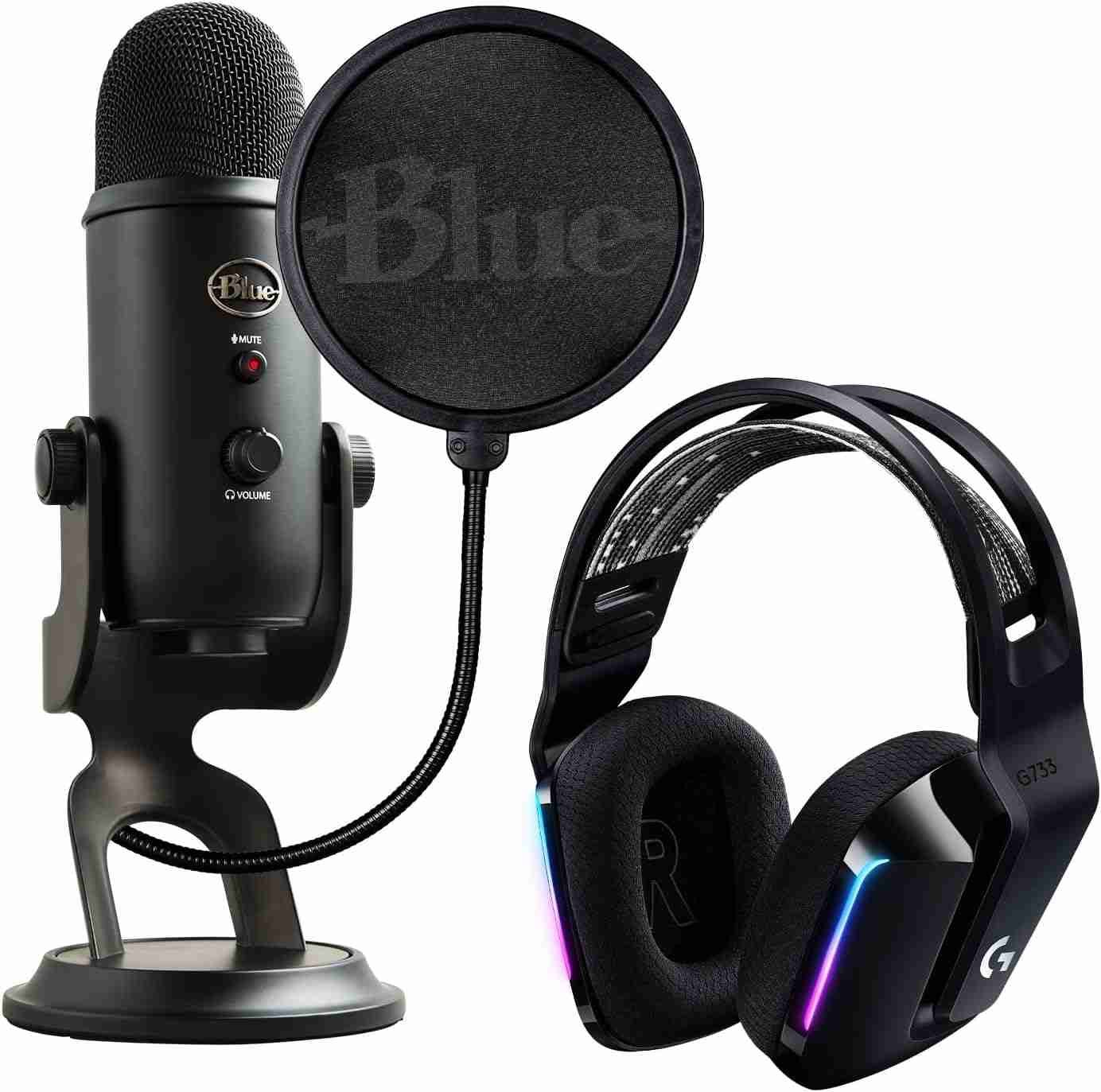 Blue Yeti Game Streaming Kit with Yeti USB Gaming, Podcast Mic, Pop Filter, PC/Mac/PS5 + G733 Lightspeed Wireless Gaming Headset with Suspension Headband, Lightsync RGB, and PRO-G audio – Blackout