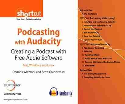 This Short Cut is designed to get you podcasting as quickly as possible. The first few chapters show you how to install Audacity, plug in your microphone, record your first podcast, and get it online as quickly as possible. The following chapters cover podcasting-specific topics, such as adding background music or conducting interviews. Finally, the remaining chapters focus on how Audacity works, with lots of tips and tricks to make complicated editing even easier.