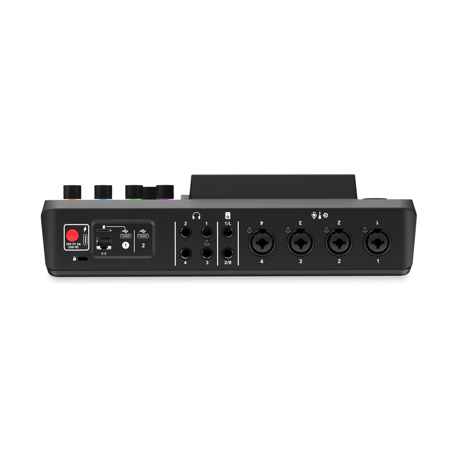 Connectivity is streamlined with dual USB-C and Bluetooth interfaces, allowing easy connections to computers, smartphones, and tablets. The device is highly customizable, offering nine assignable channels and eight programmable SMART pads for executing various audio tasks seamlessly.